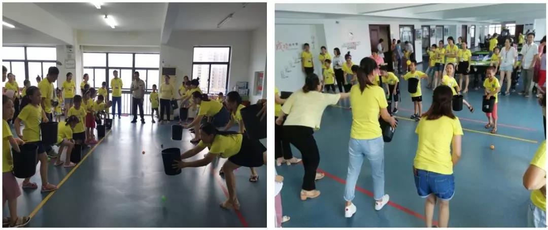 隨后,活動(dòng)在一場(chǎng)歡快的“兔子舞”中拉開了序幕,本次活動(dòng)設(shè)置了 “過河拆橋”、“無敵風(fēng)火輪”、“投籃高手”等系列趣味小游戲。在活動(dòng)中,家長(zhǎng)和孩子們密切配合,整個(gè)現(xiàn)場(chǎng)處處洋溢著家長(zhǎng)和孩子們的歡聲笑語(yǔ),全員為孩子們加油喝彩,助威鼓勁,活動(dòng)中最別具一格的游戲是“無敵風(fēng)火輪”,由于擋住了前方視線,孩子要有基本的方向意識(shí),游戲有一定的難度,在旁觀看的爸爸媽媽們即是激動(dòng)又是緊張,在爸爸媽媽們的幫助和指導(dǎo)下孩子們順利完成游戲任務(wù),最后家長(zhǎng)們也積極興奮的PK挑戰(zhàn),體驗(yàn)孩子們的樂趣、童真。