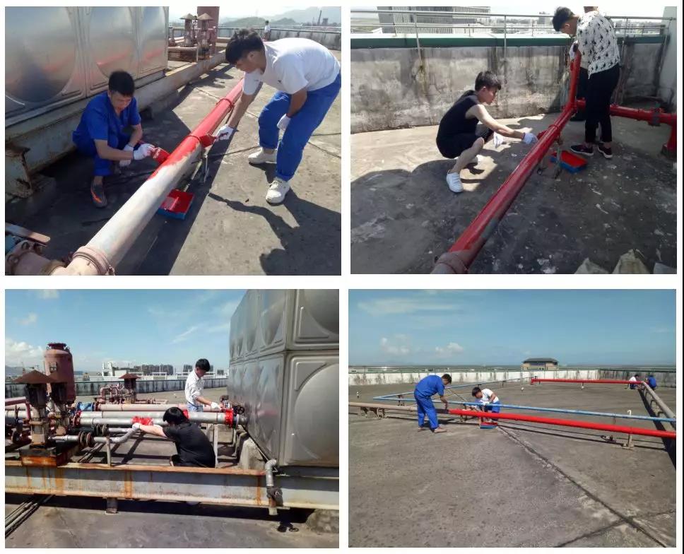 員工們頂著熱浪、不怕累,充滿熱情投入到園區(qū)設(shè)施的維護、清理活動中,重點對室外消防管道設(shè)施進行油漆粉刷,屋面垃圾清理,用實際行動踐行了“煥然新園區(qū),我是行動者”理念。極大提高了員工“主人翁”意識