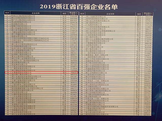 據(jù)悉,“2019浙江省百強(qiáng)企業(yè)”榜單是在中國企業(yè)聯(lián)合會(huì)、中國企業(yè)家協(xié)會(huì)指導(dǎo)下,在各市縣企業(yè)聯(lián)合會(huì)、企業(yè)家協(xié)會(huì)、工業(yè)經(jīng)濟(jì)聯(lián)合會(huì),省級(jí)各行業(yè)協(xié)會(huì)、各有關(guān)部門和廣大企業(yè)的大力支持下,按照企業(yè)自愿申報(bào),有關(guān)部門審核把關(guān),以國際和國內(nèi)通行規(guī)則排序產(chǎn)生的。這也是自2003年以來連續(xù)第17次向社會(huì)公開發(fā)布年度浙江省百強(qiáng)企業(yè)榜單。