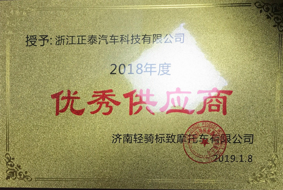 2018年度優(yōu)秀供應(yīng)商濟南輕騎標(biāo)致摩托車有限公司